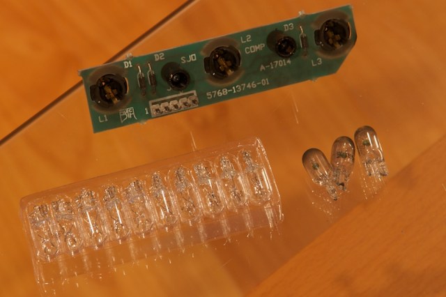 I finally got a supply of the most common bulbs in the machine – #555’s. I noticed a few burnt-out bulbs while playing, and a quick run through the lamp test mode made it easy to narrow them down.