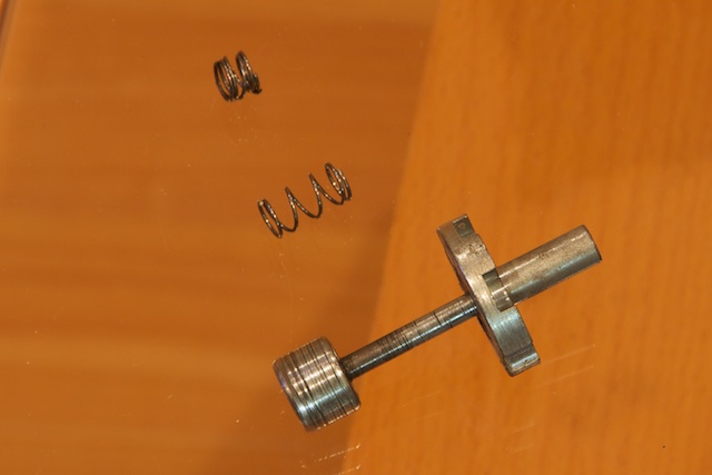 So I went ahead and removed the gun trigger from the machine to see what was up inside it. Four bolts attach the gun handle assembly to the cabinet, and can be easily accessed from inside the cabinet with the playfield raised. As suspected, the trigger spring was beyond toast. Replaced the old collapsed one (top) with the new one (middle), and cleaned the shaft that holds the spring with WD-40 (bottom). Now my trigger works and feels like new! Easy as pie.
