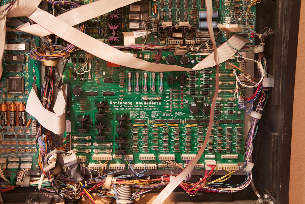 It was a pretty good guess that the reboot issues lied somewhere in the power driver board. Someone before me had obviously taken a short-cut when trying to fix the rebooting problem. Well, I decided the best course of action was to either refurbish the existing power driver board, or replace it altogether with a new board. Since I don’t really have that much experience desoldering and soldering, and the power driver board is really not the best part to practice on, I decided to get a new board. I went with the Rottendog Amusements WDB089.