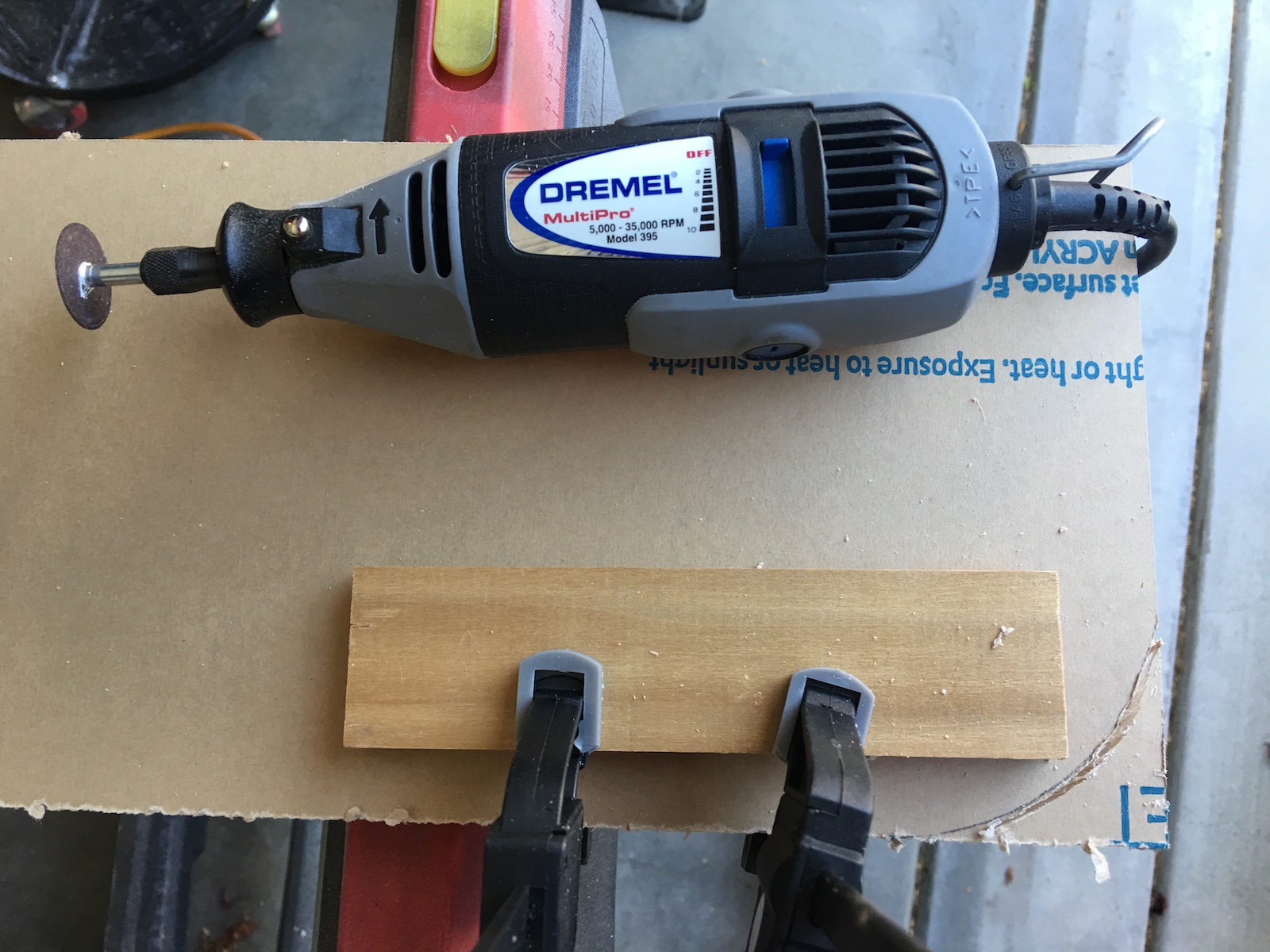 So, I turned to the Dremel. What an awesome tool. I first used the cutting wheel to do a series of rough cuts right outside my cut line: