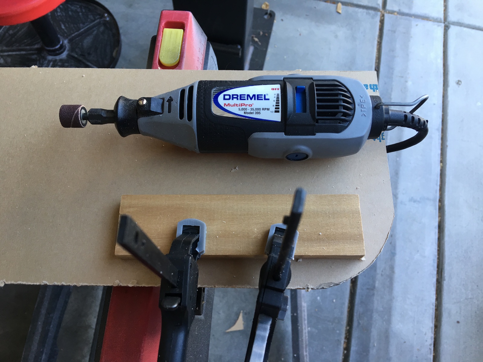 Then moved over to the sanding barrel tool to smooth out the curve and get right on the desired line. Make sure you wear proper eye protection while doing this, by the way, as hot molten plastic bits will fly!