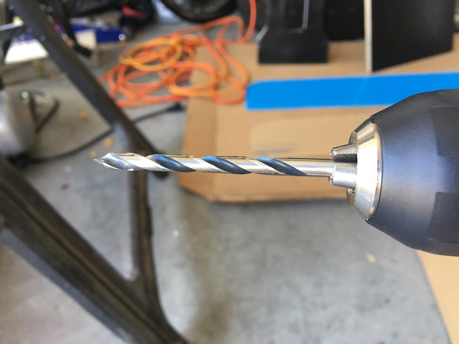 Much easier and faster than the coping saw! All that was left was drilling the holes for the screws that attach it to the cabinet, and I used a purpose-made drill bit for drilling into plastics. Notice how it has a much more acute tip vs a conventional drill bit: