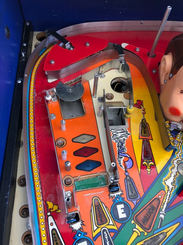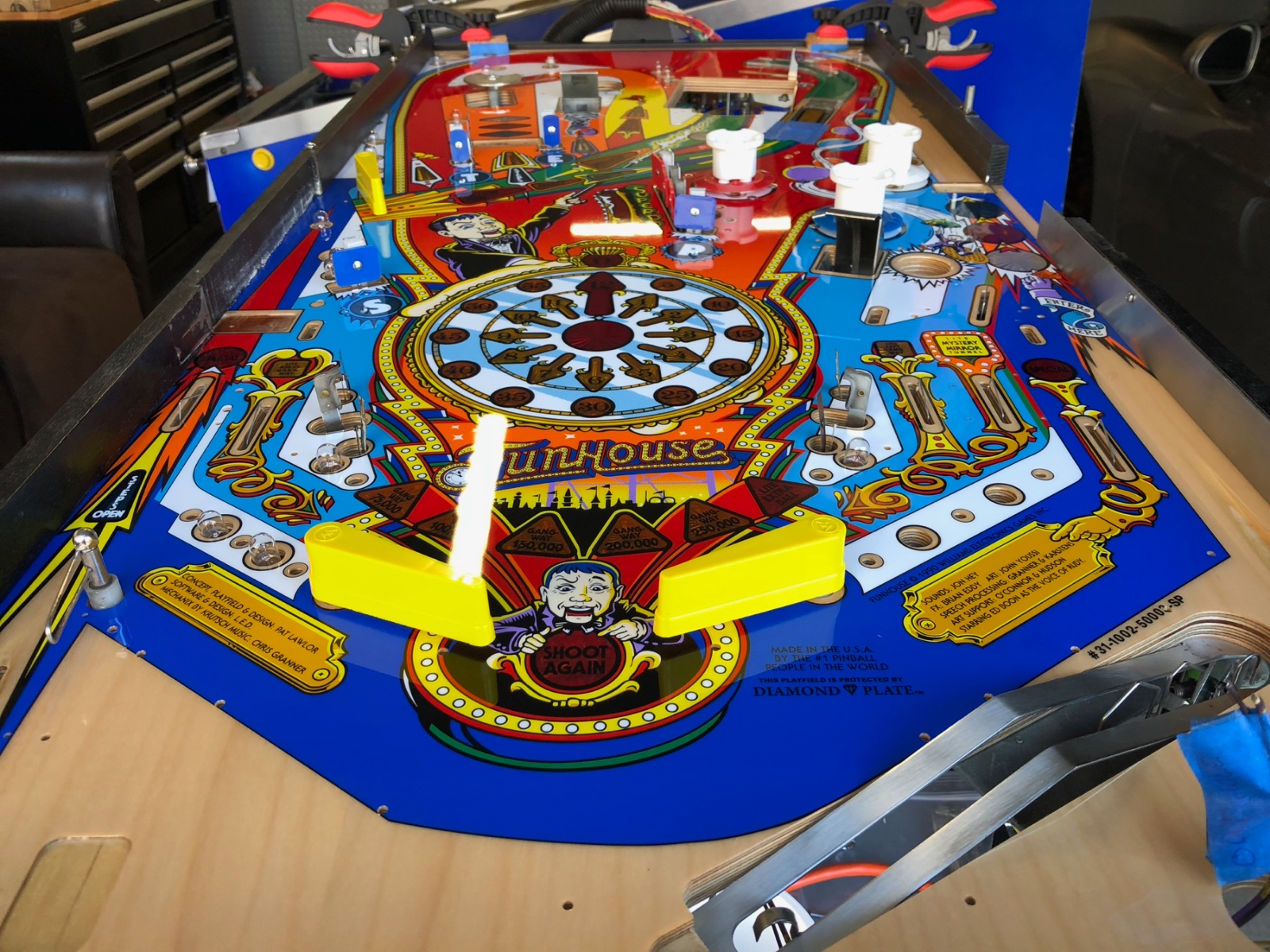 Hi, Looks like a beautiful restoration of your FunHouse. Any issues with the clearcoat on the Micro playfield cracking? I have heard of this happening. I was wondering if you can share some pictures of the underside of your playfield – wiring, and electronics. I am about to embark on the restoration of my FunHouse and I’m trying to discern factory connections from repairs. I think most is factory but I’m suspicious of a few wires and solder joints, although I’m not sure factory soldering is always beautiful. Thanks! Dave
